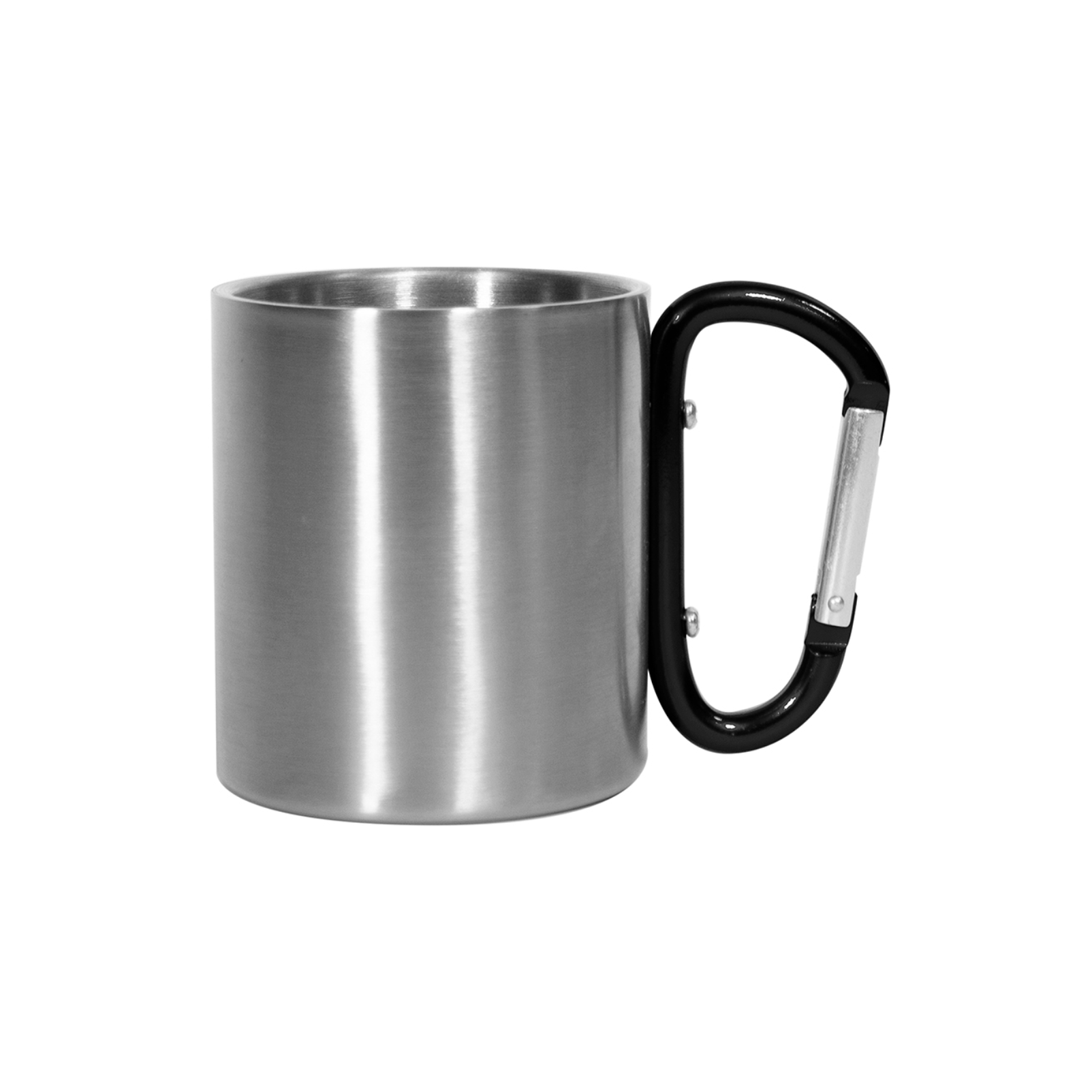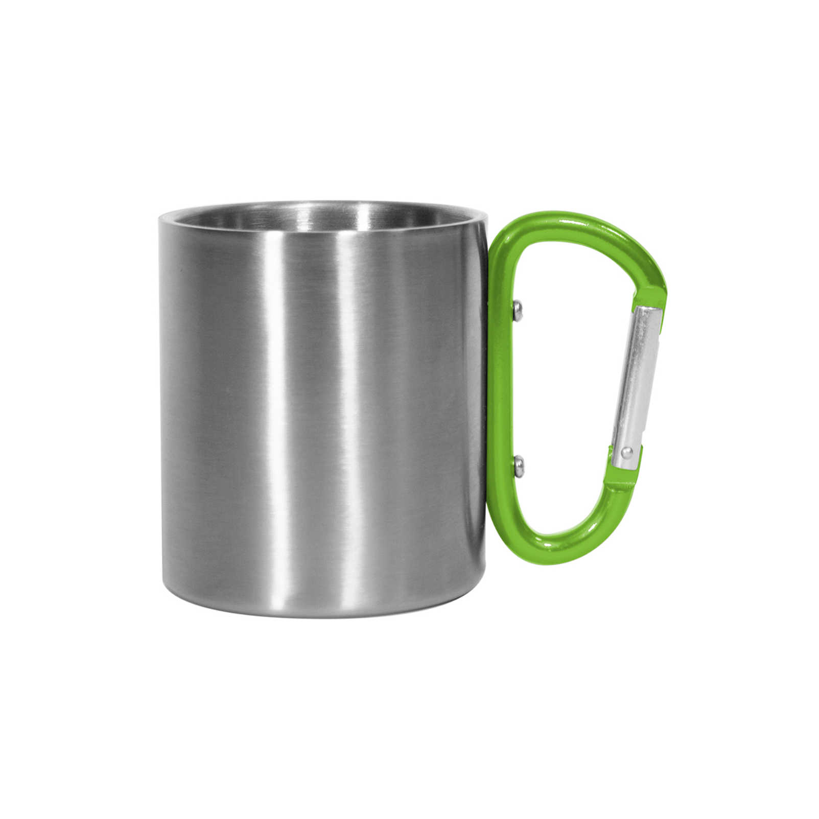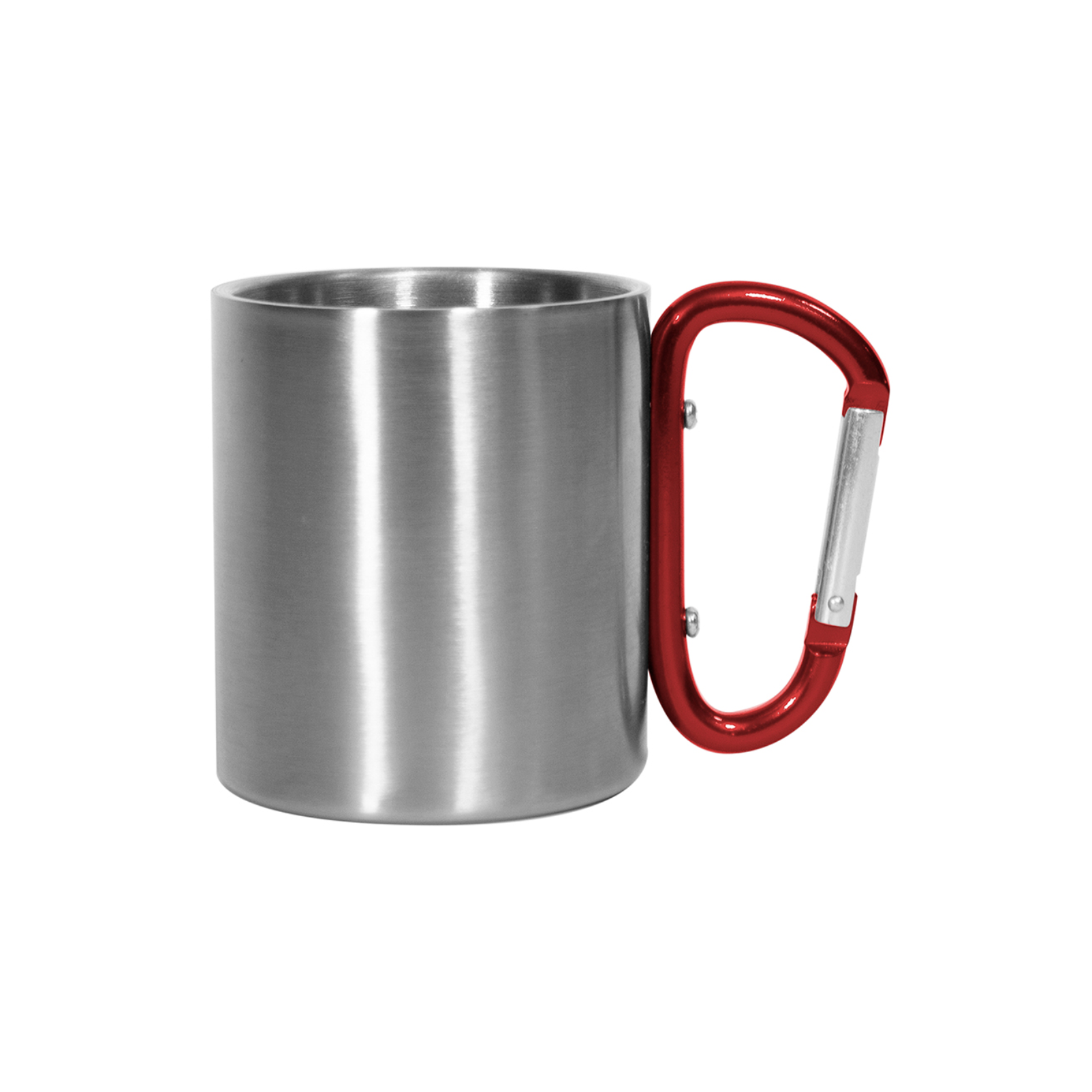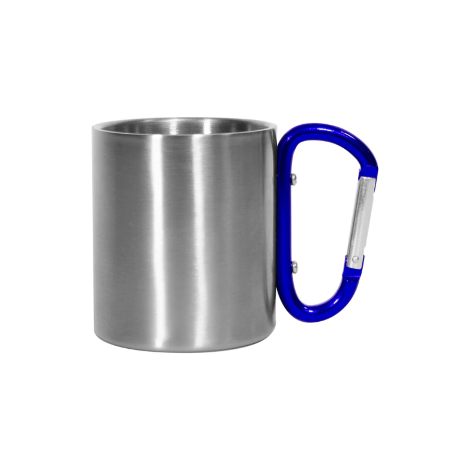 Ø 7 x 7,8 cm. Capacidad 220 ml. Acero inoxidable. Mug doble pared con Mosquetón. Interior de acero 304 y exterior de acero 201. Asa carabinero de aluminio con diferentes opciones de color. Mantiene las bebidas frías y calientes por más tiempo. Te acompaña donde vayas, ideal para camping o cualquier actividad al aire libre.