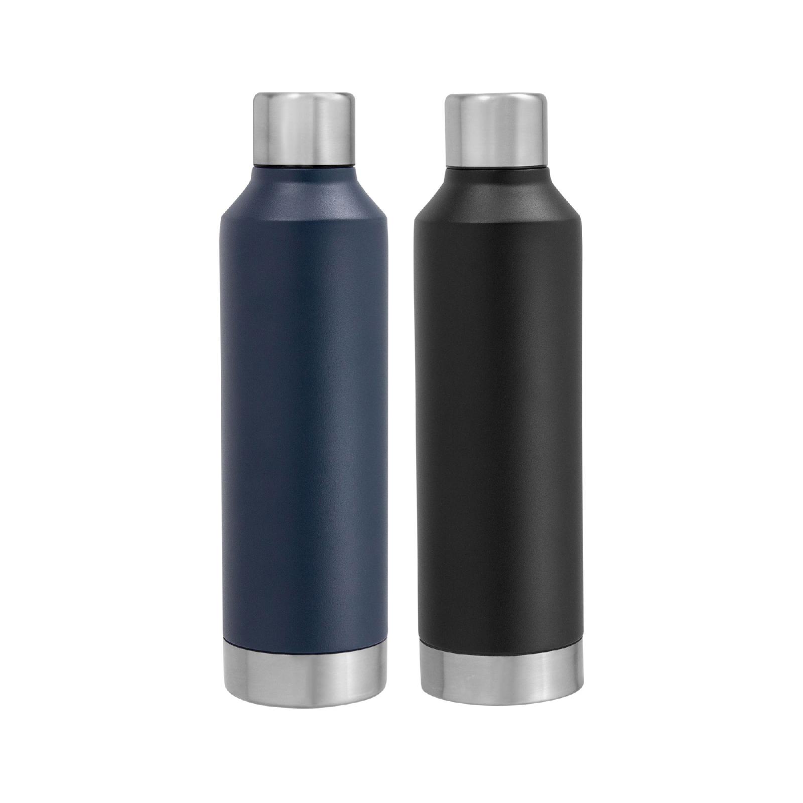 Ø 7 x 25 cm. Capacidad 550 ml. Acero inoxidable. Botella doble pared, sellada al vacío. Interior en acero 304 y exterior en acero 201. Tapa de acero 201 a rosca con anillo de silicona. Pintura Powder coat (pintura más duradera y resistente a la corrosión y el paso del tiempo). Mantiene por más de 12 hs la temperatura de las bebidas calientes y 24 hs de las bebidas frías. Presentación en caja de regalo Kraft.