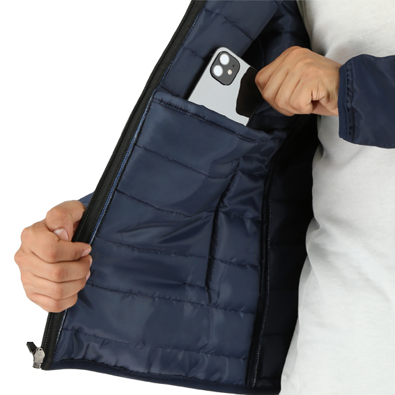 Chamarra con bolsas laterales y cierre repelente al agua.