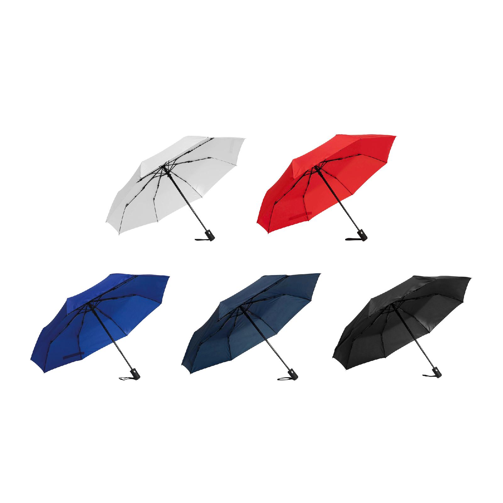 Ø 98 cm. 8 gajos. Ancho gajo 37 cm. Largo cerrado 24 cm. Largo abierto 54 cm. Poliéster, metal y plástico engomado. Paraguas APERTURA Y CIERRE AUTOMÁTICO. Eje y varillas metálicas. Mango de plástico engomado negro con correa cordón color negro. Botón a presión. Cubierta y funda de poliéster. Cierre con correa de velcro.